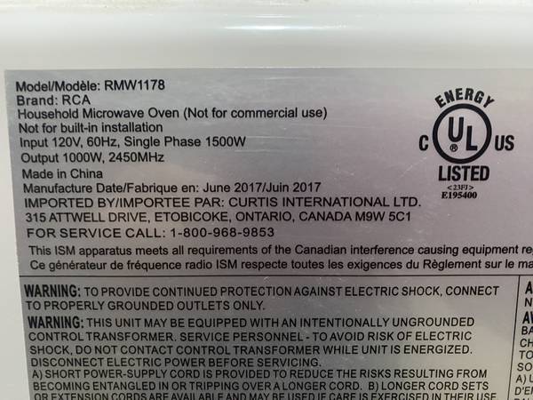 We just moved to Collingwood and the new house already has a microwave built into the kitchen so we no longer need this one. Eric