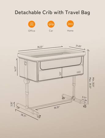 ✅ Detachable crib with a travel bag. It is allowed to be carried from home to other room, solving your baby's sleep problems in unfamiliar surroundings or outside home. Quick and easy assembly with no tools needed