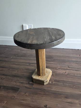 I am moving and selling my wooden plant stand. It has a diameter of 18 inches and a height of 18 inches.