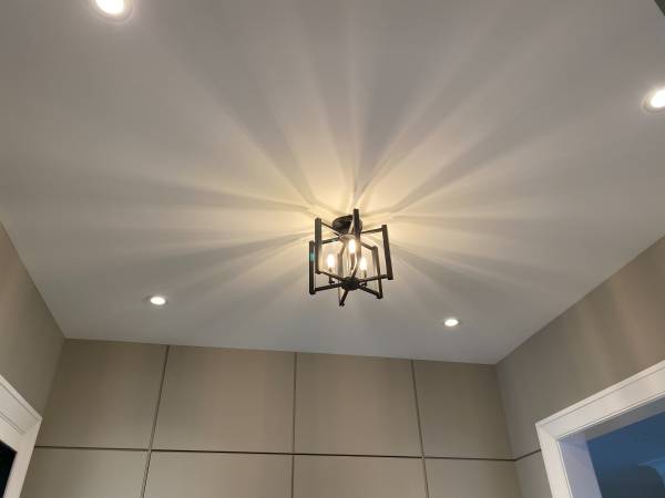 A simple cage with modern flair defines the Benson Collection. This universally flattering three-light semi-flushmount in a Matte Black finish measures 12" high x is 13" wide. It provides ample illumination from three 60-watt candelabra bulbs.
