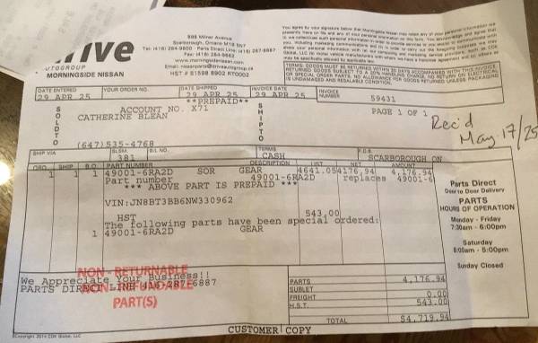 The copy of the invoice for the part shows a cost of $4,719.94 when it was whole but we needed only the rear tie rod for our vehicle.